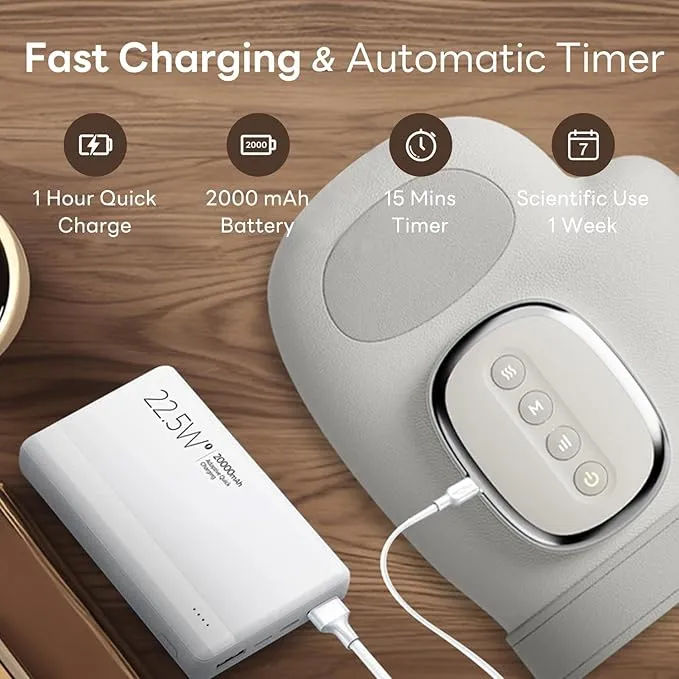 CORDLESS PORTABILITY – Massage anywhere, anytime. Equipped with a 2000mAh rechargeable battery and Type-C fast charging, this wireless hand massager offers hours of portable use, perfect for home, office, or travel.